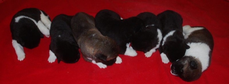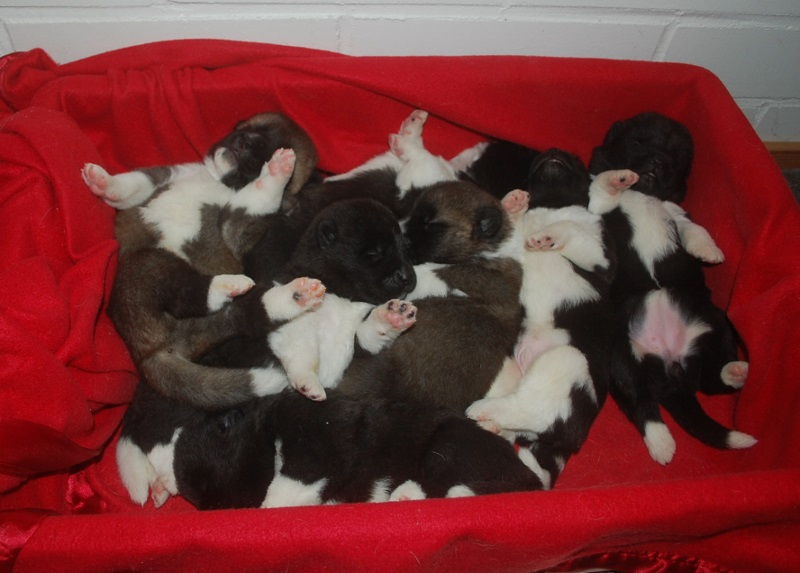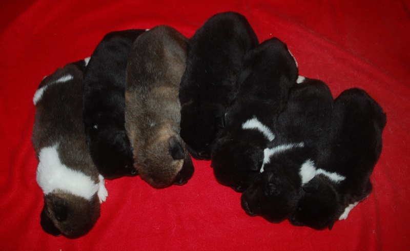 Zumba's and Enska's puppies were born at my name day, 25.11.2013. There are one female and few males available. The puppies will be dark brown like Zumba, and some of them are lighter brown. They all have white socks.