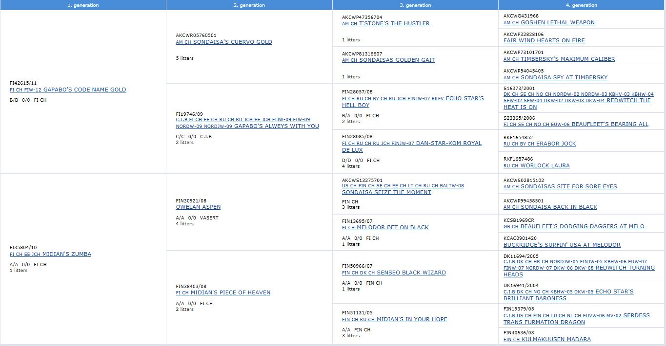 FI CH W-12 GAPABO'S CODE NAME GOLD       FI CH EE JCH MIDIAN'S ZUMBA