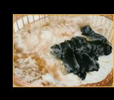kahdeksan mustaa cockeri-pentua, joiden isänä oli Spinneyhill