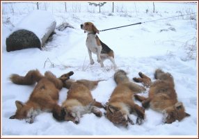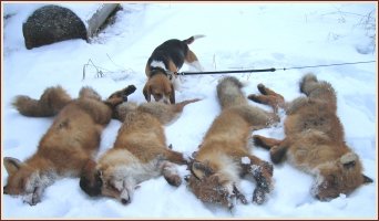 kettujen, supien ja jänisten jahtiin. Kuvissa osa metsästyskauden 2007-2008 saaliista.